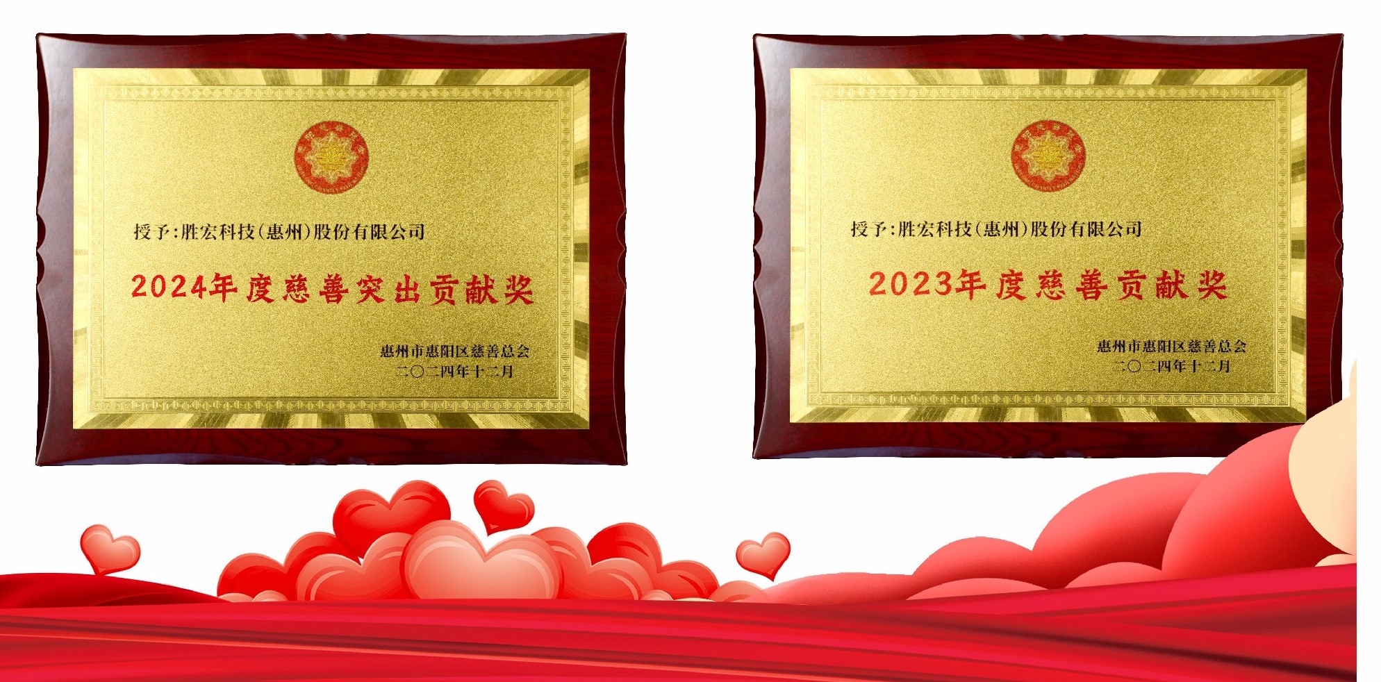 555000jcjc公海科技荣获惠阳区2024年度“慈善突出贡献奖”和2023年度“慈善贡献奖”