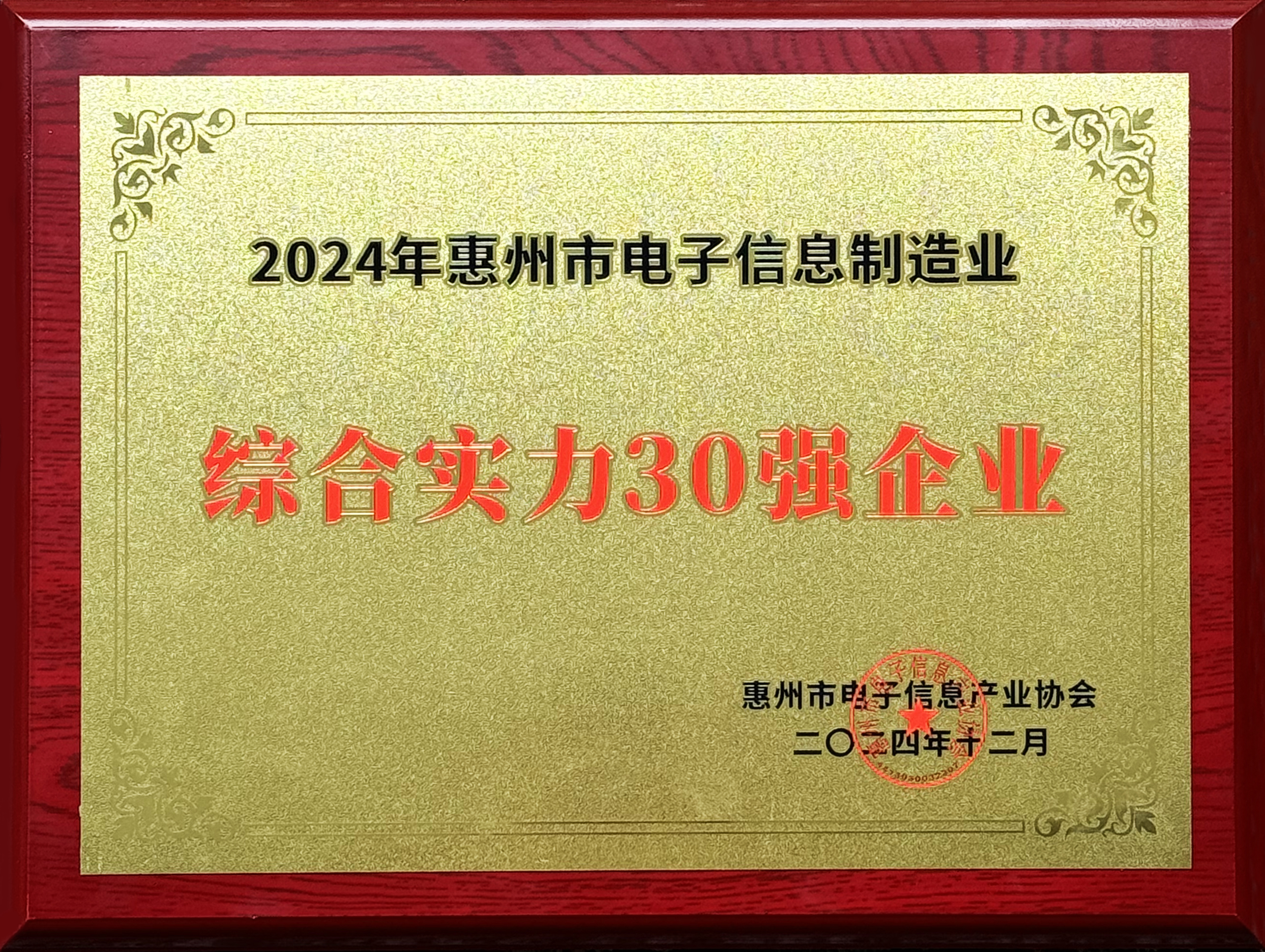555000jcjc公海科技荣获“2024年惠州市电子信息制造业综合实力30强企业”称号